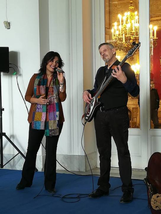 Marco Corcione inizia il concerto con un bellissimo brano “Georgia on my mind “ e dice al pubblico di avere un’estrazione jazzistica con inclinazioni blues. “A casa mia c’erano più dischi americani che italiani “ Non potendo prescindere dalla canzone classica napoletana Marco suona il bellissimo brano “Fenesta vascia”con un arrangiamento di grande effetto.Brunello Canessa,nonostante fosse febbricitante ha suonato e cantato dei brani di James Taylor e a sorpresa viene chiamato a salire sul palco Frank Mastrangelo che con la sua calda voce regala al pubblico una bellissima performance del brano “La ragazza di Ipanema”.Marco Corcione suona poi un brano dal titolo “Heartbreak Hotel” di Elvis Presley presente nel Musical “All Shook up” messo in scena dalla Compagnia d’Oriente al Teatro Acacia dal 29 al 30 marzo contenente musiche di Elvis eseguite dal vivo da una band di cui fa’ parte anche Corcione.