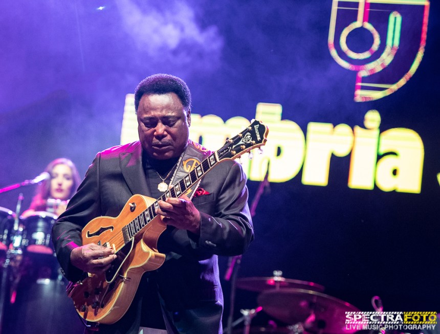 Cambio di palco veloce e arriva, applauditissimo sin dalle prime note, una star d’eccezione: George Benson. Chitarrista jazz tra i più grandi di sempre, cantante di R&B, crooner, songwriter dalla vena soul, pop star: George Benson è artista dal multiforme talento. E lo dimostra ampiamente sul palco dell’Arena dando vita ad un concerto che è autentica energia e grandissimo ritmo. Non si ferma un attimo, strepitoso quando fa “cantare” la sua chitarra con lo stesso talento di sempre nonostante abbia raggiunto ormai i 75 anni, e sia quando accenna piccoli passi di ballo, sulle note dei suoi successi di sempre come “Turn your love around”, “On Broadway”, “Nothing’s Gonna Change My love for you”, “Song for my brother”, solo per citarne alcune per concludere con tutto il pubblico sotto palco per ballare insieme al suo mito di sempre una straordinaria “Give Me The Night “
