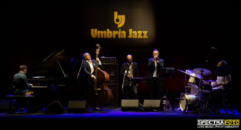 Al Teatro Morlacchi, nel tardo pomeriggio, è andato invece in scena il Rosario Bonaccorso Quintet con Rosario Bonaccorso al contrabbasso, Fulvio Sigurtà alla tromba, Enrico Zanisi al piano e Alessandro Paternesi alla batteria. Ospite speciale, Stefano Di Battista al sassofono, che con Bonaccorso ha una lunga partnership. Il concerto è stato l’occasione giusta per presentare il nuovo disco inciso per Jando Music “A New Home” che lo stesso Bonaccorso ha presentato come “il disco che mi sono regalato, alla soglia dei 60 anni, perché’ avevo bisogno di mettere insieme le emozioni e il vissuto di chi come me ha una nuova casa dentro dovuta alle emozioni di un’età che è bellissima da vivere”.