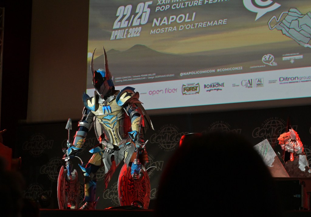 Entrare al Comicon è come ogni anno un’autentica emozione. L’atmosfera è quella di una grande festa di appassionati o semplicemente curiosi di questo mondo cosi particolare e che da anni da vita ad una manifestazione che ogni anno conferma la sua straordinaria unicità e il suo fascino. Anche chi magari partecipa per mera curiosità a questo evento si trova alla fine ad esserne assolutamente affascinato e si ritrova a girare all’interno dei vari spazi per ammirare i vari stands allestiti per la vendita di libri, fumetti, gadgets di ogni genere oltre agli spazi dedicati ai vari giochi da tavolo, videogiochi, spazi appositamente dedicati ai bambini, oltre a due grandi palchi allestiti per le varie esibizioni musicali e per l’annuale Cosplay Challenge Pro svoltasi all’interno del Teatro Mediterraneo e che ha visto sfilare costumi bellissimi che hanno emozionato il numerosissimo pubblico presente in sala.