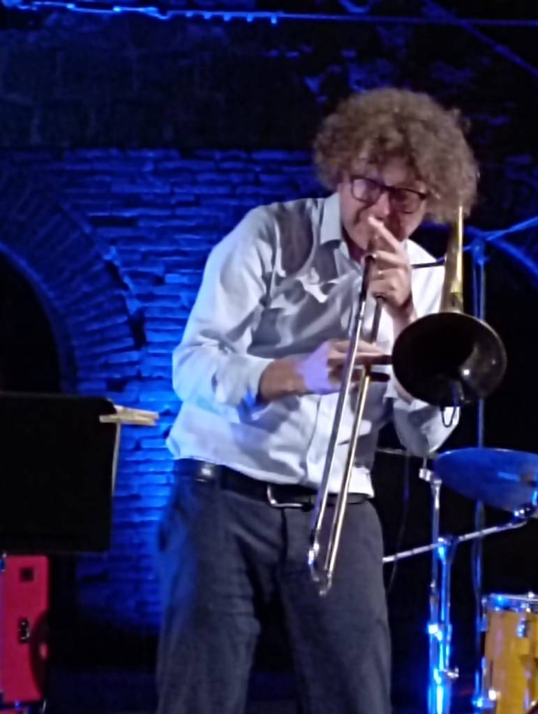 E Massimo Morganti che si diploma in Trombone, Strumentazione per Banda e Composizione al Conservatorio di Musica “G. Rossini” di Pesaro. Prosegue gli studi al Berklee college di Boston (grazie a una borsa di studio vinta ai seminari di Umbria Jazz 1997) con Jeff Galindo, Hal Crook, Phil Wilson. La sua attività concertistica, che va dalle piccole formazioni alle grandi orchestre, lo porta a collaborare con importanti musicisti del panorama Jazz Italiano e internazionale. Ha all’attivo oltre sessanta incisioni come leader, sideman e co-leader. Nel 2001 fonda la “COLOURS JAZZ ORCHESTRA” di cui è direttore con la quale incide tre dischi: “Nineteen Plus One”,” Quando m’ innamoro” …in jazz e “Home Away From Home”. Attualmente insegna trombone jazz al Conservatorio F. Venezze di Rovigo e al Conservatorio F. Morlacchi di Perugia.