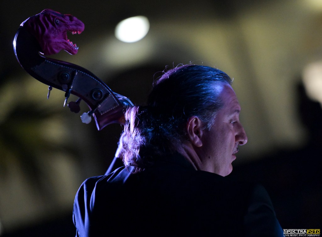 IL brano con il quale questo strepitoso duo ha iniziato il concerto è stato “Look for the almond blossom” composto dalla pianista Sumire Kuribayashi ed è il primo brano che Giuseppe Bassi ha ricevuto durante il periodo della lunga pandemia e ne ha determinato la decisione di reagire a quel periodo creando tramite facebook degli incontri quotidiani con i suoi amici durante i quali suonava i brani che alcuni musicisti tra i quali Sumire gli inviavano quotidianamente accompagnandoli col suo contrabbasso e i suoi numerosi pupazzi che rendono la stanza nella quale suona un luogo fiabesco ed incantato. A dimostrazione della importanza che hanno per Giuseppe Bassi i suoi peluche ne aveva portato con sé due posizionando sul suo contrabbasso il pupazzo “Elmo” dei Muppets e nella cassa armonica del piano il gatto robot Doremon personaggio di un famosissimo manga giapponese.