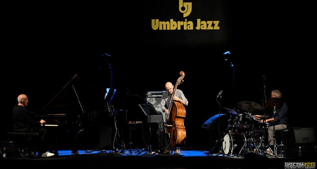 Tanti i concerti offerti durante la programmazione giornaliera ma anche qui decidiamo di scegliere di seguire il concerto al Teatro Morlacchi con i Doctor 3 formato da Danilo Rea al piano, Enzo Pietropaoli al contrabbasso, Fabrizio Sferra alla batteria. Il trio quest’anno festeggia 25 anni di successo e hanno proposto una serie di brani che hanno contraddistinto tutta la loro carriera musicale