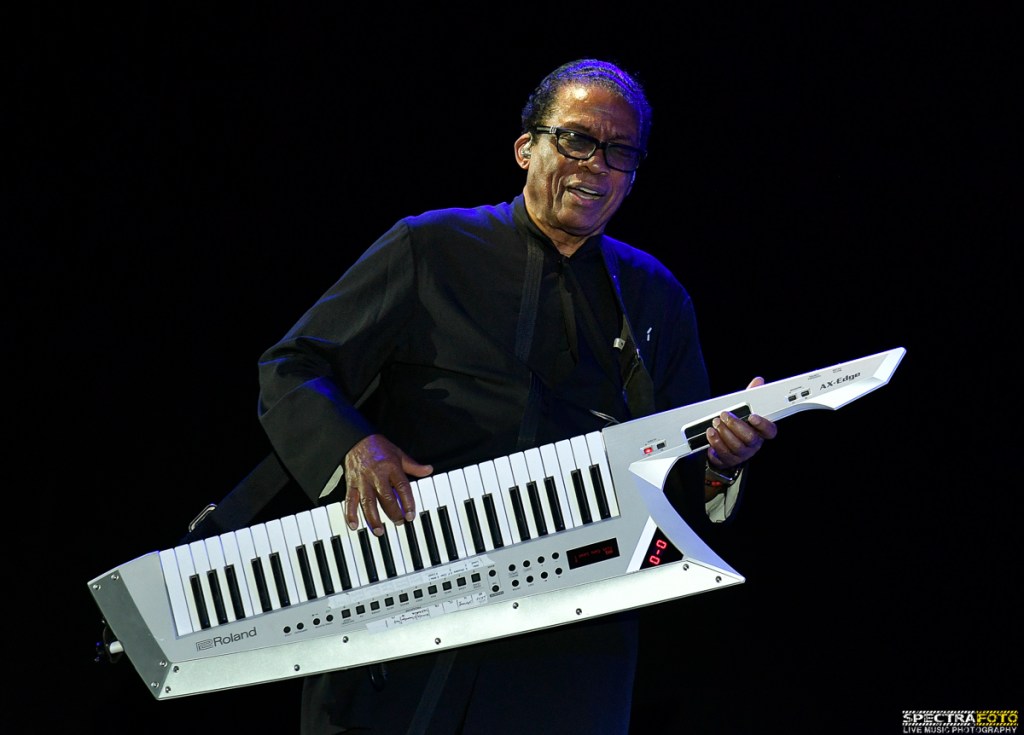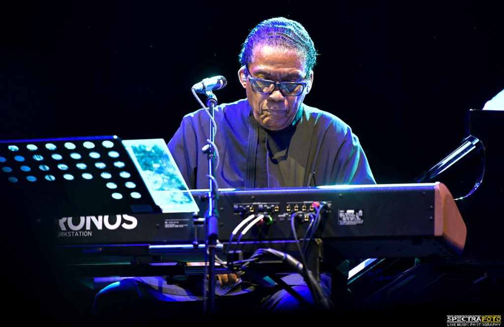Parlare di lui vuol dire parlare di un mito assoluto della musica, uno dei massimi esponenti della musica mondiale. Un autentico crocevia di jazz, funk ed elettronica, capace soprattutto di trasformare la sua tecnica sopraffina in un’ emancipazione sovversiva dove le linee si basso si trasformano in synth e i riff di chitarra suonano come un basso gommoso. In splendida forma, non ha smesso di cantare e di parlare con quel suo sorriso smagliante al pubblico per quasi due ore comunicando non solo con la musica ma anche con il rapporto con la sua band e con il pubblico che lo ascolta rapito tributandogli alla fine quando suona il suo strumento particolarissimo che lo ha reso celebre in tutto il mondo i suoi brani più conosciuti come “Cantaloupe Island” e “Watermelon Man “ il pubblico è travolto dalla emozione e scatta la standing ovation per colui che è davvero il mito del jazz mondiale .