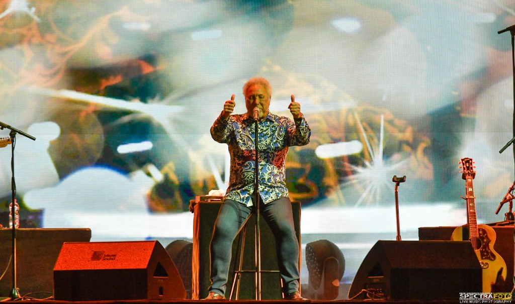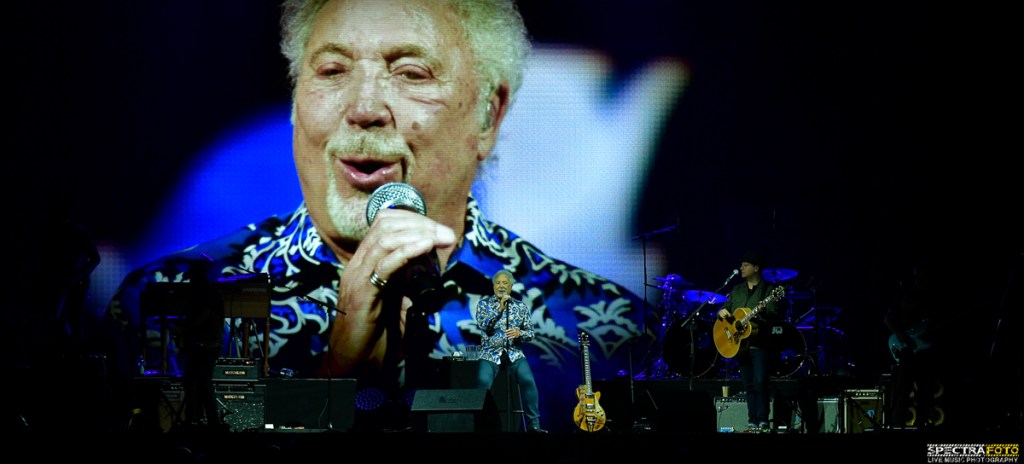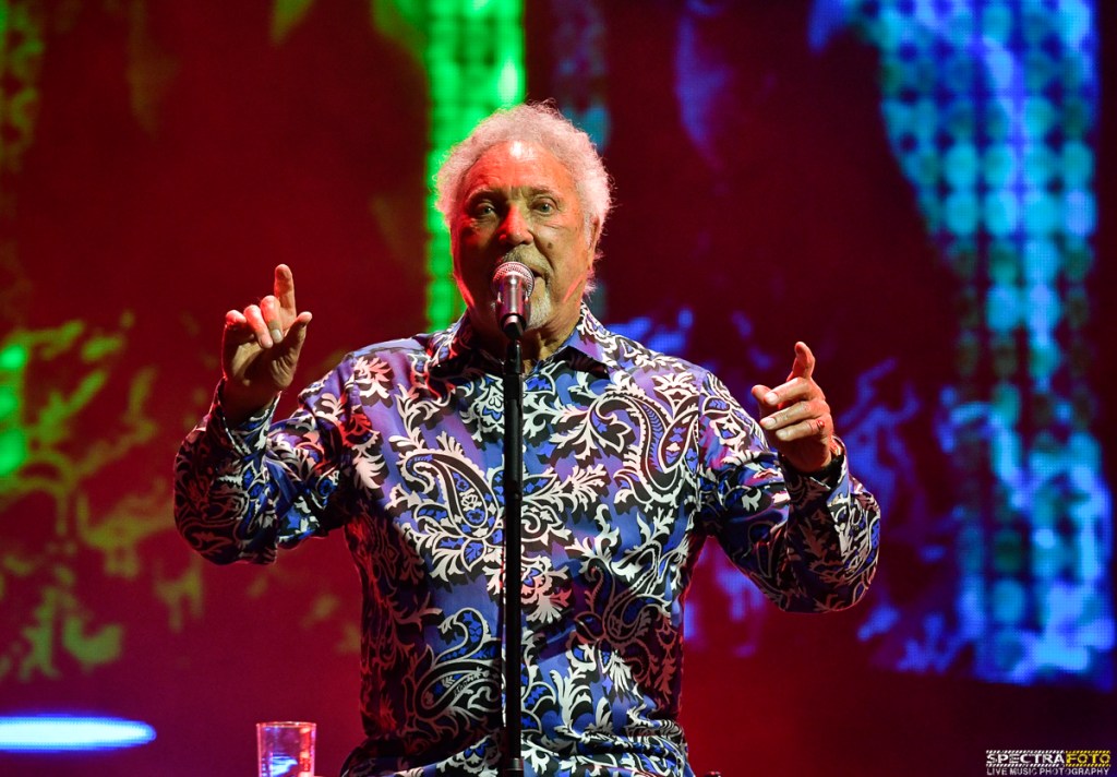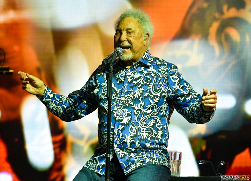 La serata si conclude come sempre all’Arena Santa Giuliana che si prepara ad accogliere una leggenda del pop soul mondiale Tom Jones. Rimandata la sua presenza di qualche anno, c erano stati alcuni impedimenti e poi il blocco totale degli eventi nel periodo della pandemia, arriva sul palco dell’Arena con un bastone e questo fa preoccupare il pubblico sulle sue reali condizioni fisiche. Lui stesso poi spiegherà ad inizio concerto che si tratta solo di un supporto per aiutarlo a camminare visto che ha un problema di sciatica e sarà costretto a cantare per tutto il concerto seduto su uno sgabello al centro del palco. Alterna i suoi successi a quelli di altri mostri sacri che senza timore chiama amici. Bob Dylan e Joe Cocker per esempio, reinterpretati con la sua impronta da crooner senza tempo. Ad accompagnarlo una band con chitarre e basso elettrico, contrabbasso all’occorrenza, organo e percussioni. Poi una fisarmonica. Un set intenso, tra il rock e il folk, un Tom Jones che non avresti detto, ma che raccoglie l’entusiasmo del pubblico, nel quale non mancano i più giovani. Quando inizia ad intonare “Sex bomb” in molti, già pronti sotto palco e nei lati dell’Arena a scatenarsi su tali note, stentano a riconoscerla visto che viene stravolta, rallentata, Sembra un altro brano ma non per questo privo di fascino e di interesse musicale. Poi si scatena con tutti i suoi più grandi successi e un brano gospel che fa emozionare intensamente tutto il pubblico presente. Sul finale del concerto una grande umiltà e disponibilità verso il pubblico. Dichiara “A questo punto sarei dovuto uscire per andare nel backstage e aspettare che mi richiamaste sul palco per il bis mentre avrei sorseggiato un bel bicchiere di vino. Facciamo finta che l avete già fatto e sono già rientrato sul palco per regalarci ancora emozioni reciproche”. Questo fa scattare un lunghissimo applauso e un amore ancora più intenso verso l’Artista che nonostante gli anni riesce ancora a essere un protagonista assoluto della musica mondiale e un sentimento di riconoscenza infinita al Direttore Artistico Carlo Pagnotta e a tutto lo staff di Umbria Jazz per aver permesso loro di assistere ad uno dei concerti che resteranno sicuramente nella storia del Festival stesso.