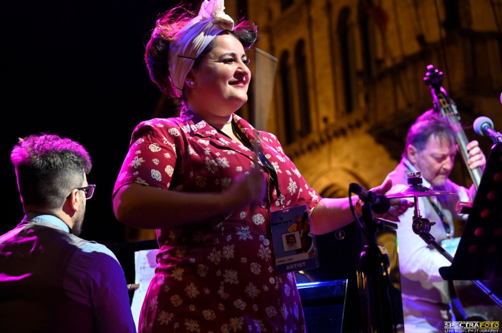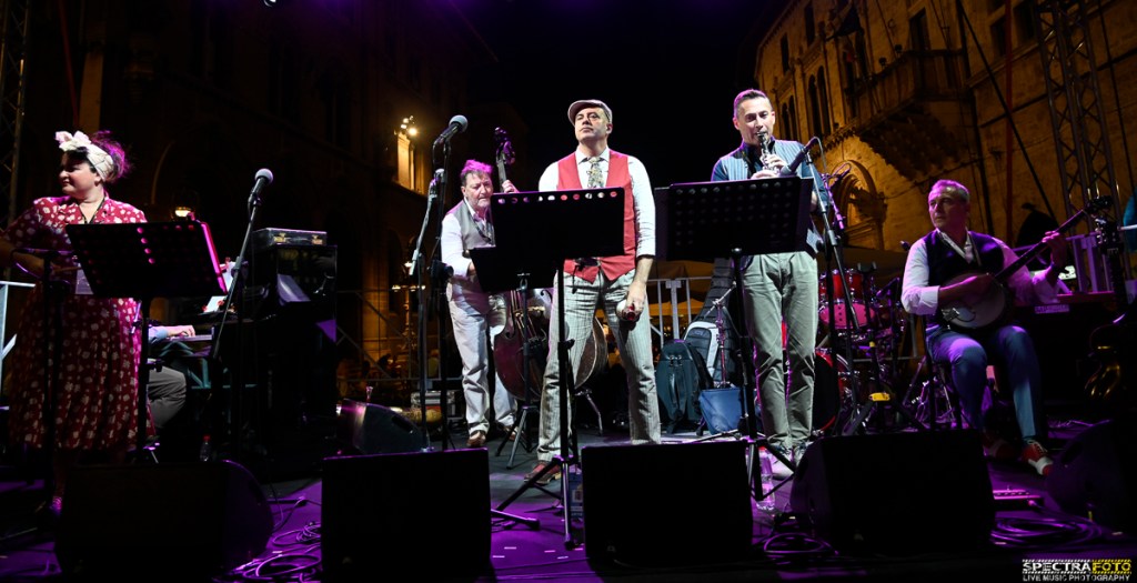 Sul palco dei Giardini Carducci si sono alternati dalle 13 fino a tarda sera tantissimi gruppi che hanno animato questo bellissimo luogo di Perugia. Tra i vari gruppi musicali che si sono esibiti sul palco c’è stato quello dei “Sugarpie&Candymen” ,formatosi nel 2008 in Emilia-Romagna, conosciuti anche per alcune collaborazioni con Renzo Arbore sono noti anche per aver riarrangiato nel loro genere ,ovvero il jazz, molti brani popolari di artisti e gruppi notevolmente conosciuti, alcuni dei quali; Bohemian Rhapsody,Disco Inferno,Come Together,Quando, Quando ,Nel blu. dipinto di blu. Tra i loro album vi è anche “Let it Swing”dedicato interamente ad alcune it dei Beatles. Bravissima la cantante del gruppo Lara Ferrari che ha regalato dei momenti di grande spensieratezza coinvolgendo con il suo swing il numeroso pubblico presente nei Giardini Carducci.