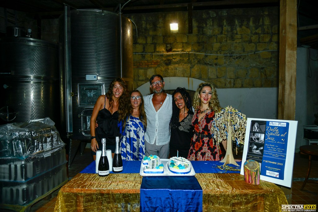Alle Cantine dell’Averno si è celebrata una ricorrenza davvero speciale che può essere considerata sicuramente come la quintessenza dell’amore verso l’Arte, la Musica, la Cultura e verso il nostro territorio da parte di due persone eccezionali, Arturo Delogu e Luisa Perfetto, i quali, 10 anni fa, hanno creato una delle realtà cittadine più belle del territorio: l’associazione Artemide. Gli stessi Arturo e Luisa, presentando la loro serata, hanno dichiarato al pubblico accorso numerosissimo alla serata organizzata appunto per festeggiare il decimo anniversario della fondazione di Artemide “Non volevamo fare i soliti tour guidati, volevamo dare al turista una esperienza in più, volevamo che il turista vivesse il luogo, ne assaporasse i frutti, ne ascoltasse la musica. Entrammo a far parte della grande famiglia di Malazè, di cui tutt’ora facciamo parte. Questo festival archeoenogastronomico dei Campi Flegrei conosciuto ormai in tutto il mondo.”