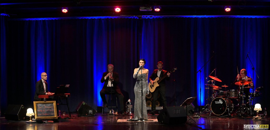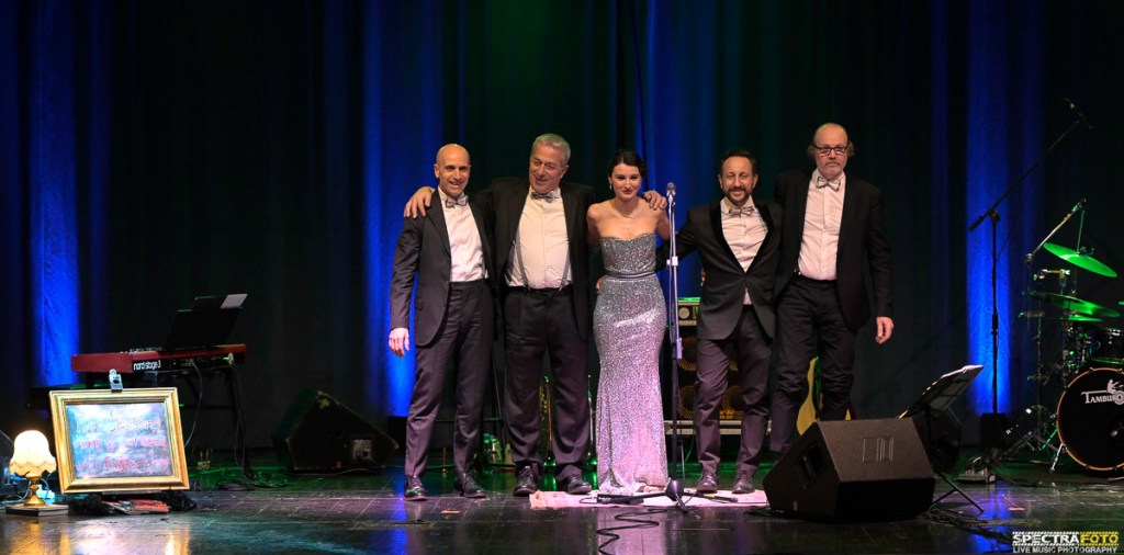 Il quintetto, infatti, grazie ad arrangiamenti dei brani presentati molto particolari, è riuscito a ricreare un ideate ponte tra gli anni ’50 e i giorni nostri, riproponendo grandi classici del passato con sonorità modernissime insieme a reinterpretazioni di brani contemporanei con grande grinta e passione per la musica swing. Questo ha suscitato una grande attenzione da parte del pubblico presente in sala che è stato letteralmente affascinato da un repertorio che è molto particolare, fatto di canzoni inaspettate, che colpiscono per la loro originalità e la loro capacità di coinvolgere il pubblico che ha potuto assaporare la bellezza di brani storici della musica swing ma anche riscoprire brani della musica contemporanea completamente trasformati non solo dalla voce di Daniela Tenerini ma anche dal talento dei musicisti della Four Season Band che sono riusciti a ricreare le stesse atmosfere che hanno da sempre animato le grandi band di swing degli anni ’50, il tutto realizzato non solo con grande energia e coinvolgimento del pubblico, ma anche con grande sinergia tra i musicisti presenti sul palco e anche tanta passione unita ad un sincero divertimento che la stessa band ha mostrato per tutto il concerto stesso di provare nell’esibirsi con un repertorio cosi brioso ed emozionante per il pubblico, intervallato dalle parole della stessa Daniela Tenerini che, tra un brano e un altro, racconta alla platea cosa c’è dietro ad ogni brano o arrangiamento scelto per la loro performance.