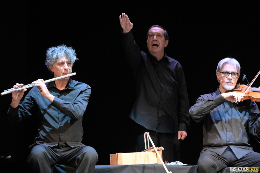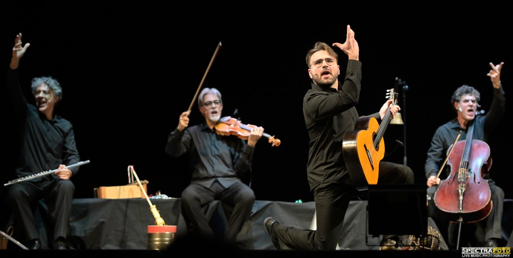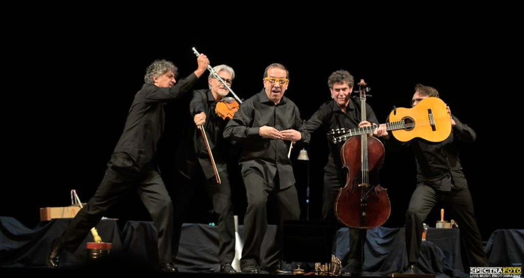 Strepitosi i momenti nei quali i Virtuosi danno tutto se stessi unendo momenti divertentissimi di teatro a ritmi e armonie come in “Sequezia di Spezia” o nell’ultimo brano della storia della tribù del Katanga dove il pubblico, in lacrime per le troppe risate, ha omaggiato i Virtuosi di San Martino con un lunghissimo applauso.