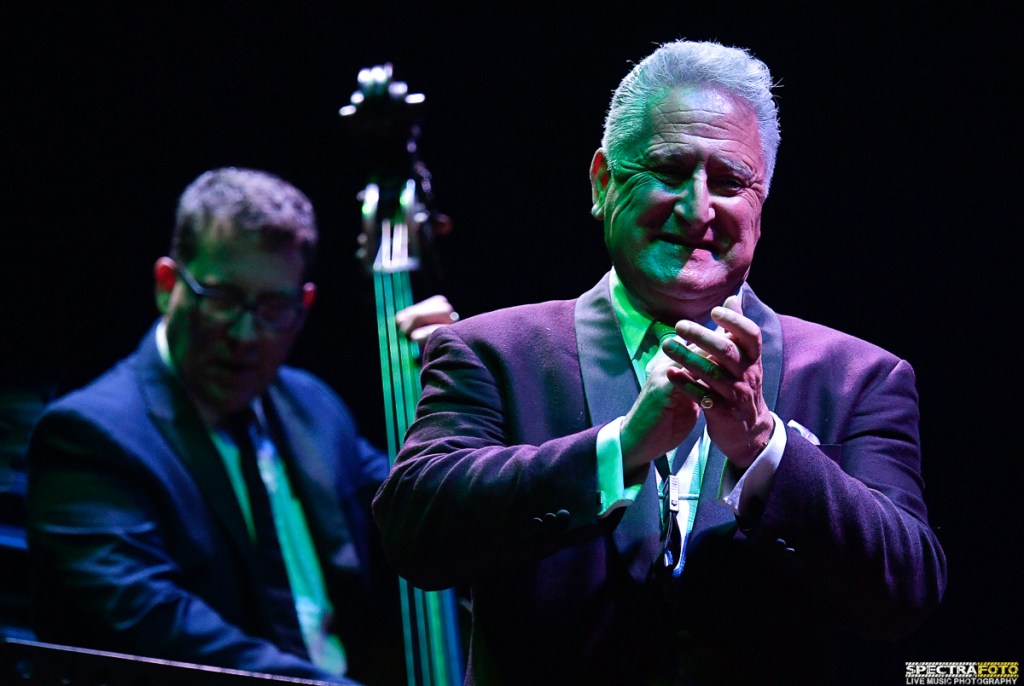 Nello stile e nell’estetica di Ray Gelato i riferimenti a Buscaglione, Carosone, Rabagliati e Natalino Otto sono infatti evidentissimi. Nel suo repertorio “Tu vuo’ fa l’americano” va quindi a braccetto con “Just A Gigolo”, “O Marie” con “Everybody Loves Somebody”, “Carina” con “I Ain’t Got Nobody”, “That’s Amore” con “Just One of Those Things”. Con Ray Gelato e i suoi “giganti” non c’è stato un attimo per annoiarsi: travolgente, ironico, con una carica inesauribile di vitalità dall’inizio alla fine del concerto, irresistibile nel suo accento americano nel dialogare con il pubblico, nel presentare i vari brani in scaletta, presentando i suoi musicisti con una verve e un’allegria che va oltre tutto e tutti.