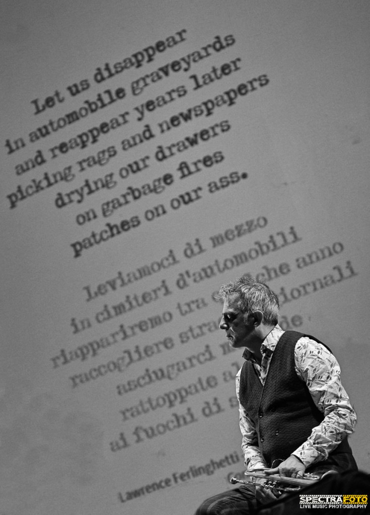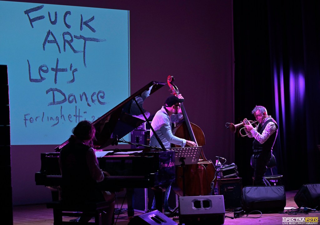 Dopo questo doveroso prologo, è iniziato il concerto “Ferlinghetti” ovviamente dedicato all’attivista Lawrence Monsanto Ferlighetti, uomo di grande cultura, poeta, attivista culturale, pittore, esponente della “Beat Generation” con Gregory Corso,Jack Kerouac, Allan Ginsberg e molti altri. Ferlinghetti conobbe tra l’altro la prigione per aver pubblicato “Urlo” di Ginsberg con l’accusa di oscenità.