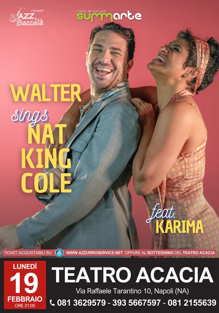Il 19 febbraio 2024 al Teatro Acacia di Napoli ci sarà una serata jazz dall’atmosfera magica. Torna in esclusiva il concerto “Walter sings Nat King Cole” feat. Karima.