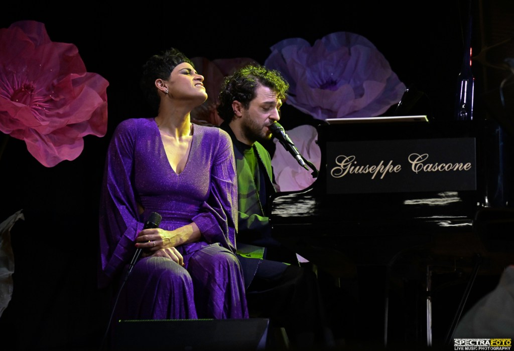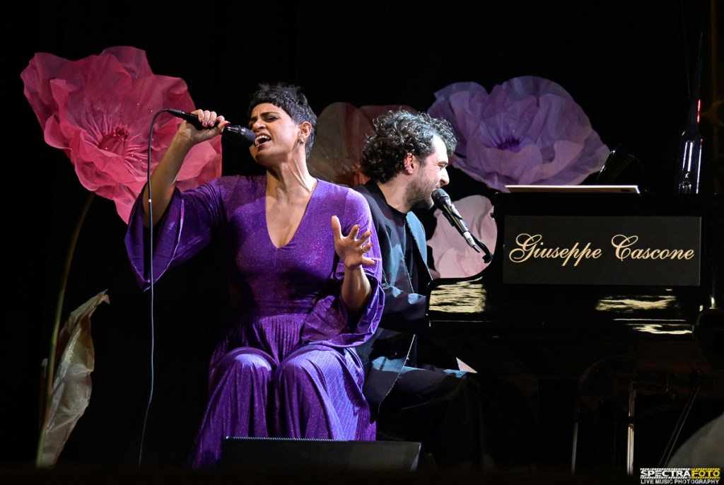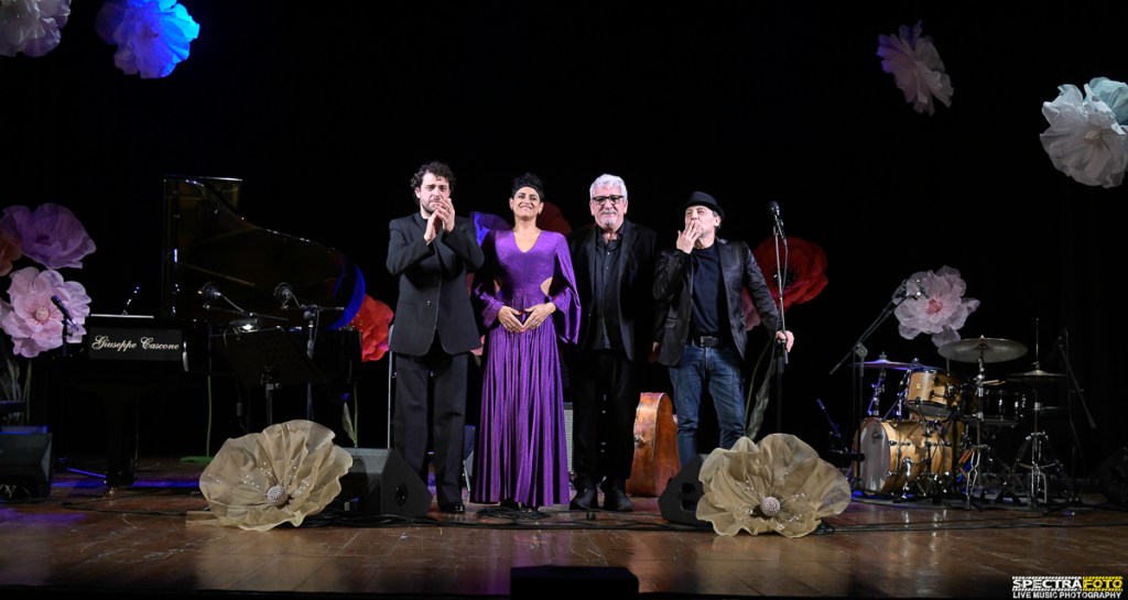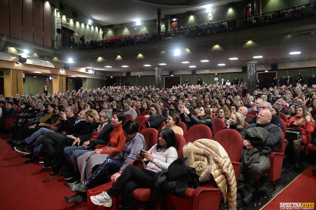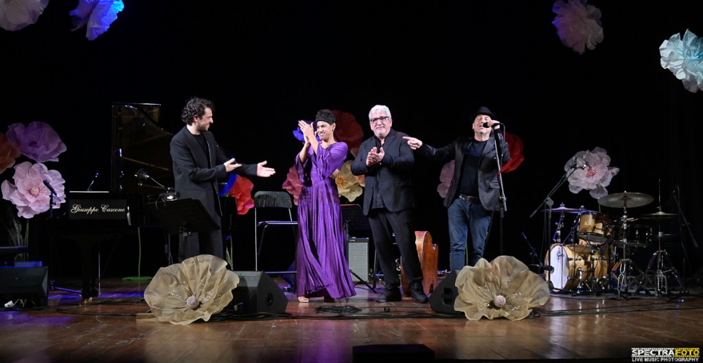 Ma il pubblico non ha nessuna intenzione ancora di lasciare il Teatro e chiede a gran voce ai musicisti di ritornare sul palco che lo accontentano con una splendida versione di “Reginella” di Walter Ricci in piano solo, raggiunto da Karima per un ultimo brano insieme di grande emozione come “Tu si na cosa grande” accolto da un lunghissimo applauso da tutto il pubblico presente in sala.