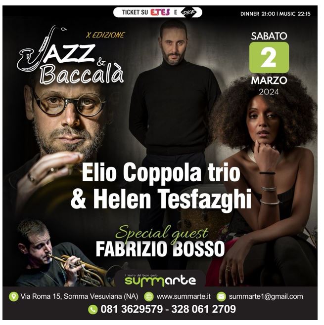 Sabato 2 Marzo 2024, sul palco del Teatro Summarte Elio Coppola Music trio & Helen Tesfazghi with special Guest Fabrizio Bosso.