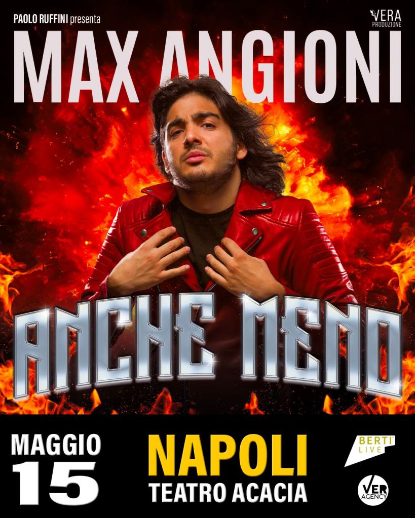 MAX ANGIONI “Anche meno” Mercoledì 15 MAGGIO 2024 ore 21 Napoli – Teatro Acacia Via Raffaele Tarantino,10