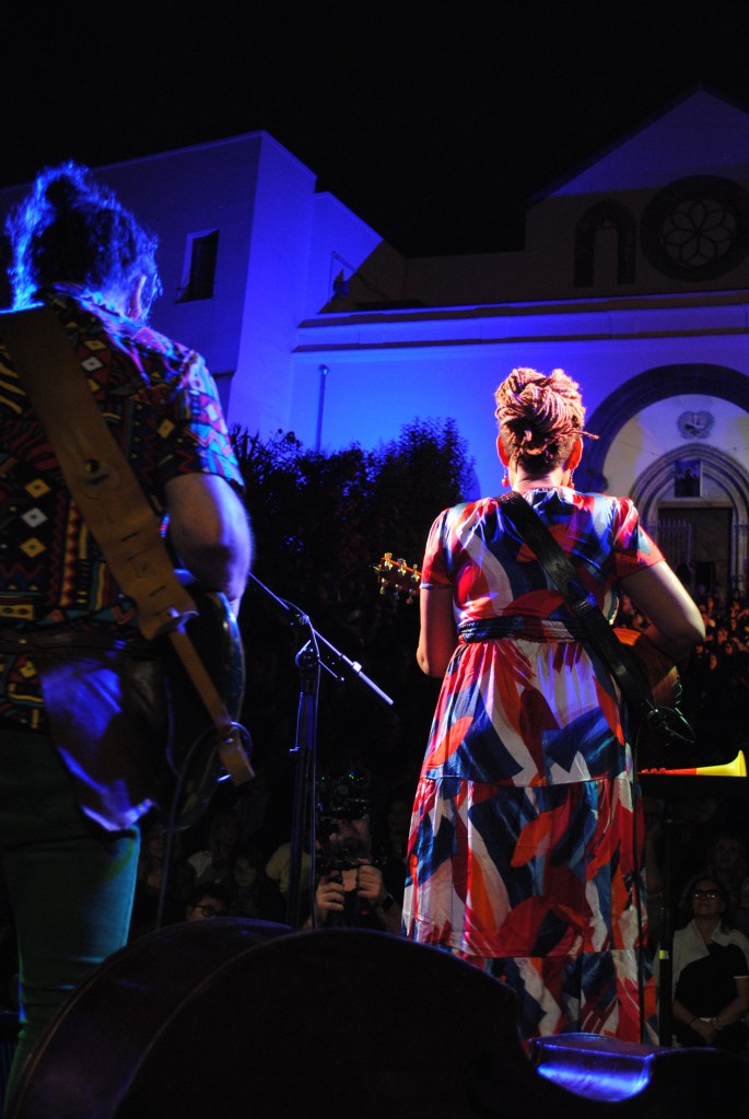 Presentatasi sul palco allestito proprio di fronte al Sagrato , di fronte ad un numerosissimo pubblico seduto sulle gradinate del sagrato stesso, in un abito straordinariamente colorato, ha presentato, con la sua immancabile e amatissima chitarra, e l immancabile sorriso, tantissimi brani della sua carriera musicale che parlano di pace nel mondo, di amore oltre qualunque limite o barriera, di giustizia sociale, di difesa dei diritti dei piu’ deboli del mondo, oltre al nuovissimo brano “Cais D’Port Inglês”, il suo nuovo single uscito proprio lo scorso 28 giugno su tutte le piattaforme digitali.