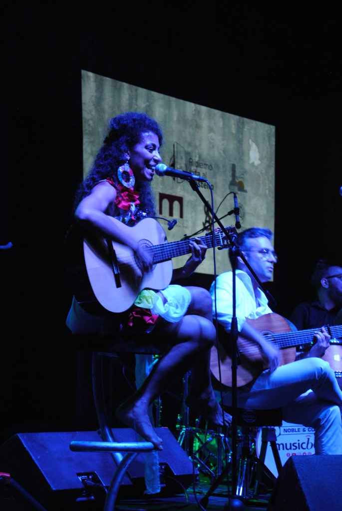 Bellissima ed elegantissima in un vestito bianco adornato di tanti fiori colorati, Dea Gil ha letteralmente affascinato il numerosissimo pubblico presente nel cortile del Castello con diversi brani della musica popolare brasiliana accompagnata dal talento incredibile del chitarrista Raul ballardin, il batterista Mauricio Melo , e uno strepitoso Neney Santos, grande percussionista che ha dato un valore in piu’ al concerto stesso con il suo meraviglioso talento e la sua inesauribile energia e incontenibile amore verso la musica e la tradizione brasiliana.