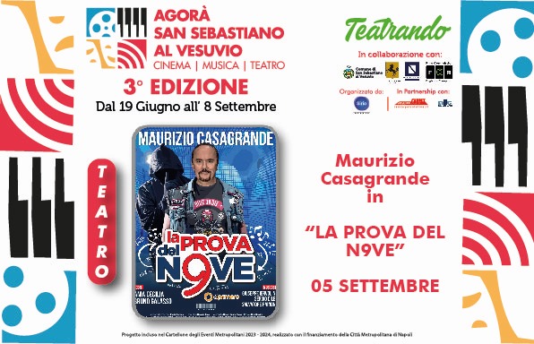 Inizia l’ultima settimana di grandi appuntamenti ad Agorà San Sebastiano al Vesuvio terza edizione, la rassegna organizzata da Sirioevents in collaborazione con Red Carpet e Napoli Jazz Club, nell’arena di 500 posti del Parco Urbano di via Panoramica Fellapane: domani, giovedì 5 settembre 2024, alle ore 21,15, Maurizio Casagrande è di scena ne “La prova del nove” (costo del biglietto 20 euro – secondo settore 15 euro).