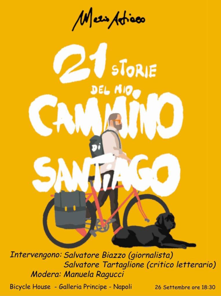 Giovedì 26 settembre alle ore 18.30 presso Bicycle House, il bike cafe’; nel cuore della Galleria Principe di Napoli, un luogo dove si respira davvero l’anima di chi ha fatto della bicicletta una vera e propria filosofia di vita, si terrà la presentazione del nuovo romanzo dello scrittore Mario Artiaco dal titolo “21 Storie del mio cammino di Santiago” (ingresso libero). Insieme all’autore ci sarà il giornalista Salvatore Biazzo e il critico letterario Salvatore Tartaglione che leggerà alcune pagine tratte dal romanzo. Modera l’incontro Manuela Ragucci.