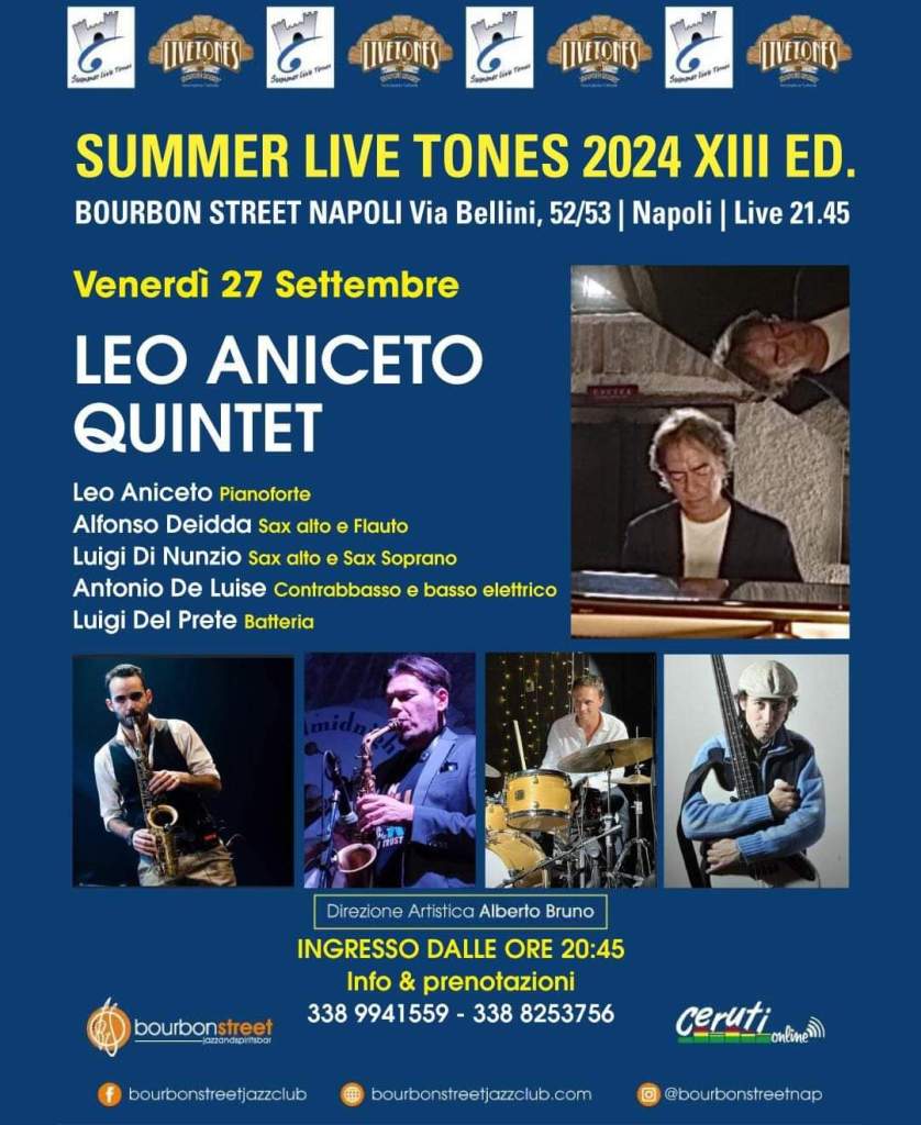 LIVE TONES NAPOLI AL BOURBON STREET VENERDÌ 27 SETTEMBRE :LEO ANICETO QUINTET