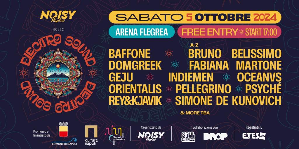 La più grande arena all’aperto del sud Italia si trasforma in dancefloor. Sabato 5 ottobre l’Arena Flegrea di Napoli accoglie Electro Sound, il festival promosso e finanziato dal Comune di Napoli – nell’ambito del progetto Napoli Città della Musica – che viaggia tra sonorità elettroniche, live performance e atmosfere immersive, distribuite su diverse aree. Organizzato dal Noisy Naples Fest, in collaborazione con Drop Eventi e Soul Express Collective, questa prima edizione di Electro Sound sarà completamente free entry, previa registrazione sul sito etes.it.