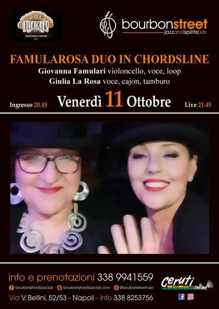 LIVE TONES NAPOLI AL BOURBON STREET VENERDÌ 11 OTTOBRE :FAMULAROSA DUO IN CHORDSLINE GIOVANNA FAMULARI & GIULIA LA ROSA