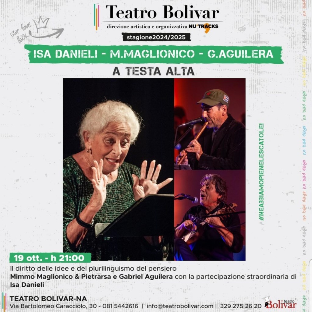 Applausi finali a scena aperta per la bellissima interpretazione de “La Buona Novella” a conclusione i bis di rito, con una canzone di Nada che di incastra bene nel contesto dal titolo “Gesù”.