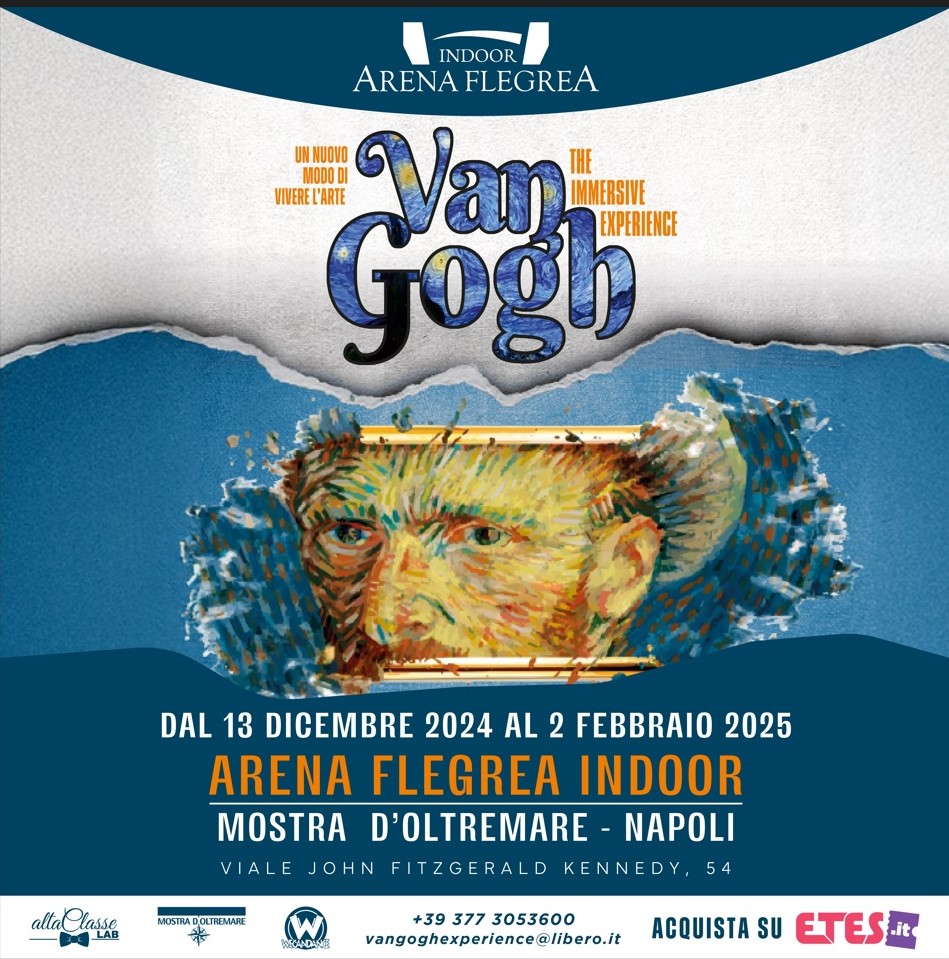 Un’occasione unica che unisce le emozioni legate alla singolare vita di Vincent Van Gogh con l’immersione totale nella sua affascinante arte. Dal 13 dicembre 2024 al 2 febbraio 2025 arriva a Napoli, all’Arena Flegrea Indoor,la mostra “Van Gogh – The Immersive Experience”. Un’esposizione prodotta da Arena Flegrea e Alta Classe Lab che permette di vivere e sperimentare tutte le sensazioni di una giornata con il grande artista olandese, grazie a proiezioni 3D mapping, all’utilizzo di visori di virtual reality e ad un percorso didattico-culturale.
