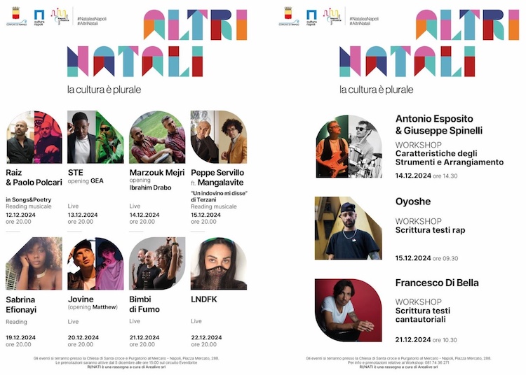 Dal 12 al 22 dicembre undici appuntamenti con Raiz feat. Paolo Polcari, Peppe Servillo feat. Mangalavite, Marzouk Mejri, STE, Jovine, Francesco Di Bella, Simona Boo & Bimbi Di Fumo, Sabrina Efionayi e Linda Feki