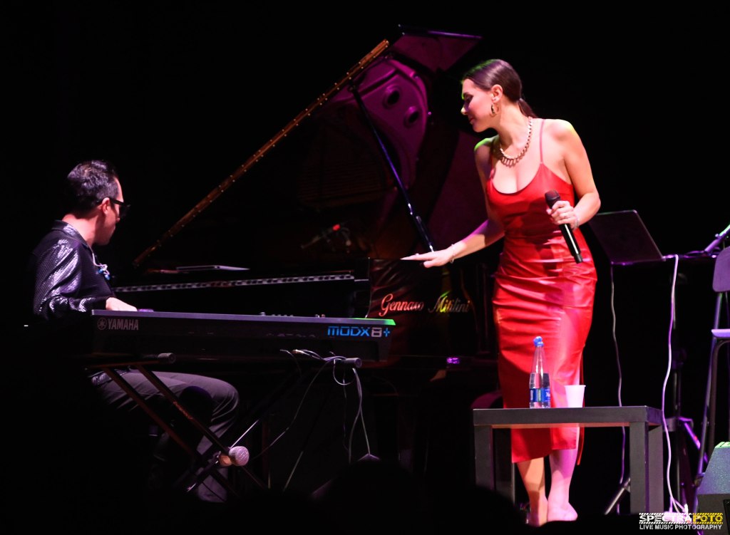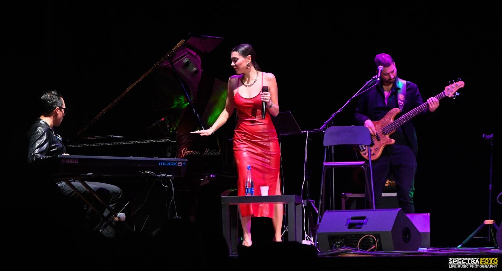 Simona Molinari si distingue per una voce cristallina, calda e dal timbro raffinato. La sua capacità di alternare interpretazioni delicate e intensità emozionale è sorprendente. Riesce a portare il pubblico in un viaggio attraverso epoche e generi, mantenendo sempre una connessione intima con chi ascolta. La sua presenza scenica è magnetica: ogni gesto, sorriso e parola sembra studiato per valorizzare l’essenza del brano interpretato.