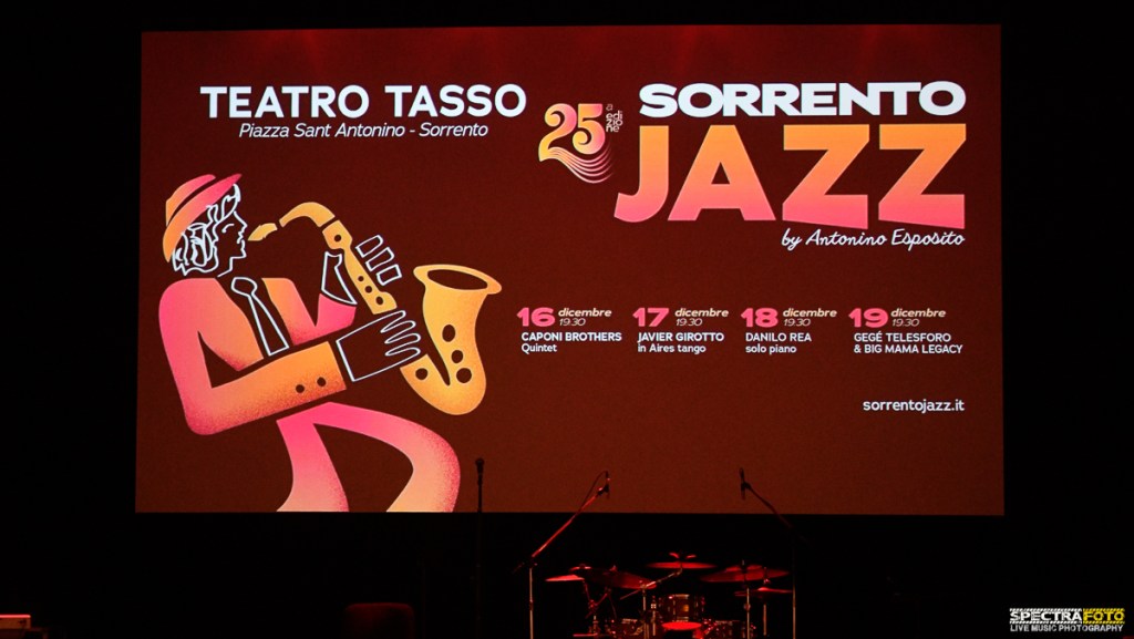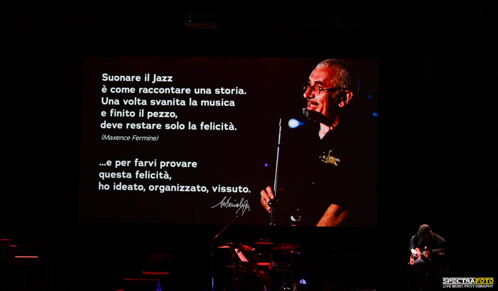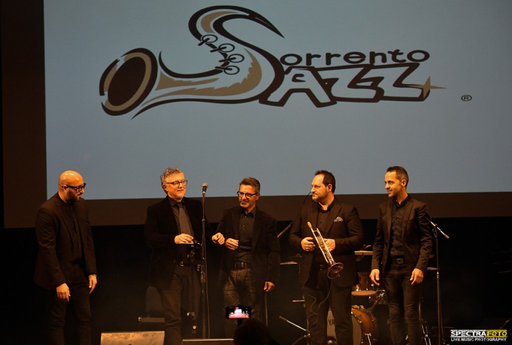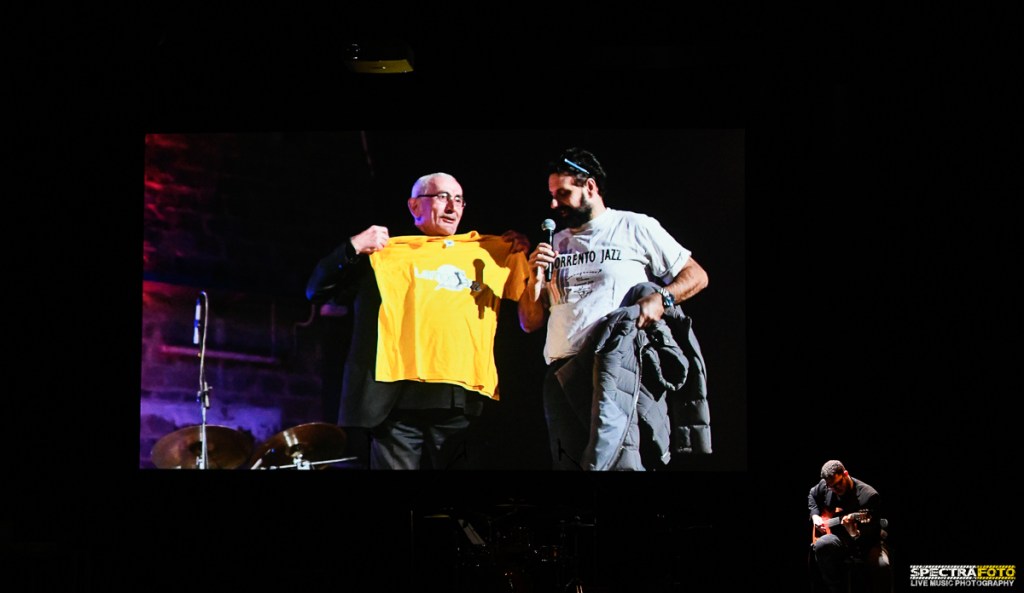 E ha continuato: “Non è semplice parlare però ci proverò… Stasera ci sta tristezza e gioia si mescolano si alternano ma non si dividono, la gioia perché Sorrento Jazz compie 25 anni, la tristezza perché questa gioia doveva essere vissuta da Antonino che è stato l’ideatore e organizzatore di questo festival… “più volte il discorso è stato interrotto dagli applausi del pubblico a sottolineare la grande stima e amicizia nei confronti di Antonino.