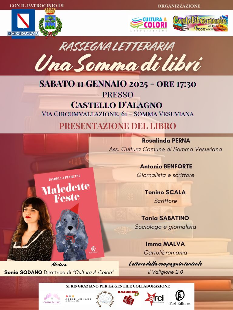 SOMMA VESUVIANA (NA) – Sabato 11 gennaio 2025, alle ore 17:30, presso lo storico Castello d’Alagno a Somma Vesuviana, prenderà il via il primo appuntamento del nuovo anno della rassegna letteraria “Una Somma di Libri”, organizzata da Cultura A Colori e Cartolibromania Malva, con il patrocinio della Regione Campania e del Comune di Somma Vesuviana e il sostegno dell’Arci di Somma Vesuviana.