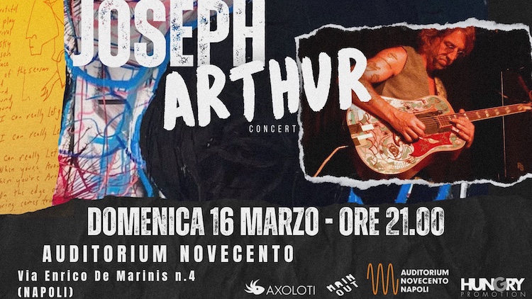 Joseph Arthur, cantautore e visual artist americano, nel corso del 2025 pubblicherà un nuovo album e in solo si prepara a presentare le sue nuove canzoni dal vivo con un tour Europeo. Domenica 16 marzo il tour toccherà anche Napoli per l’unica data del Centro Sud Italia presso l’Auditorium900. (Inizio concerto ore 21, ingresso euro 20 comprensivo di prevendita mentre al botteghino euro 18 se i biglietti sono disponibili).