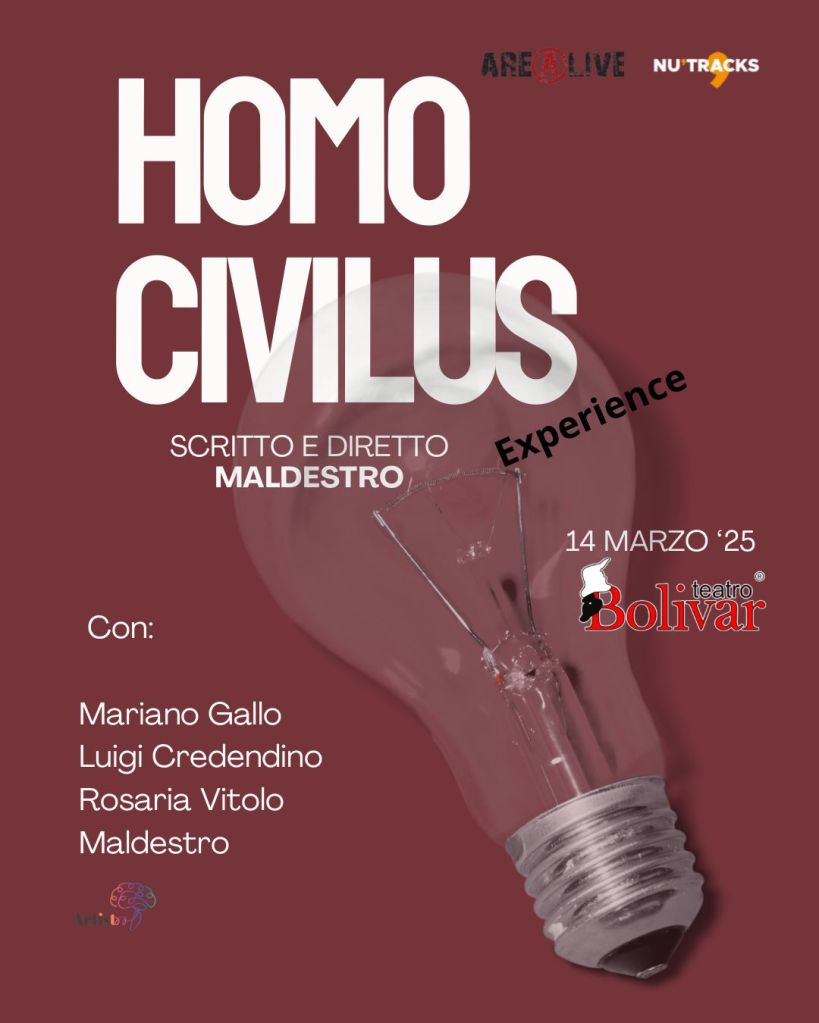 In scena al Teatro Bolivar di Napoli HOMO CIVILUS – EXPERIENCE, scritto e diretto da Maldestro