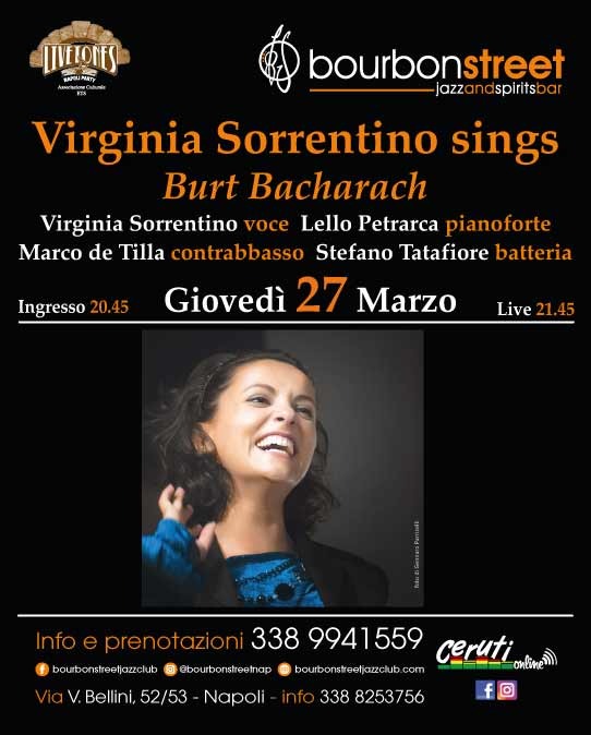 LIVE TONES NAPOLI AL BOURBON STREET GIOVEDÌ 27 MARZO :VIRGINIA SORRENTINO SINGS BURT BACHARACH