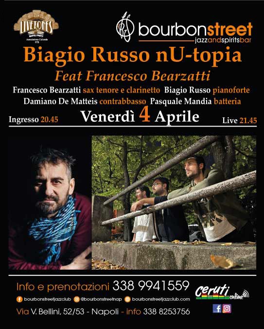 LIVE TONES NAPOLI AL BOURBON STREET VENERDÌ 4 APRILE :BIAGIO RUSSO nU-topia feat FRANCESCO BEARZATTI