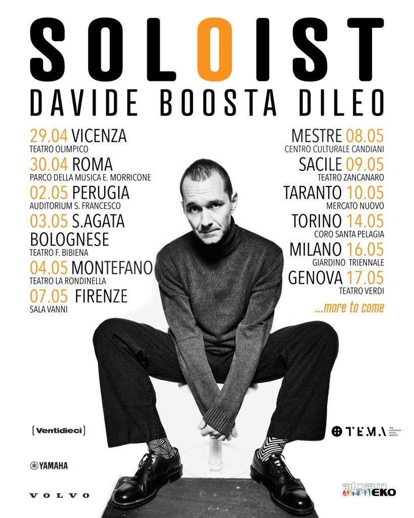 La sua carriera solista – parallela al percorso con i Subsonica – lo ha portato a sviluppare un’identità musicale, in bilico tra il lirismo del pianoforte e le infinite possibilità offerte dalla tecnologia. Proseguendo un percorso iniziato con Facile (2020) e le Post Piano Session (2022), con Soloist, Davide “Boosta” Dileo torna a esplorare e celebrare il pianoforte come protagonista assoluto, declinandolo in tre distinti “abiti” sonori che raccontano altrettanti mondi emotivi e stilistici.