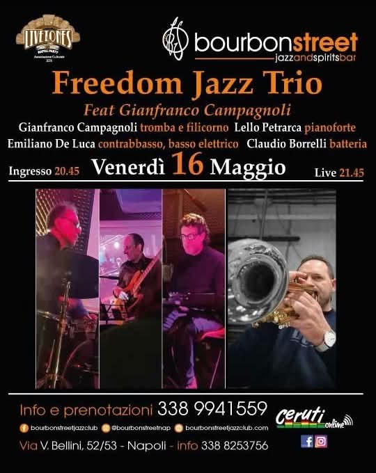 LIVE TONES NAPOLI ETS AL BOURBON STREET VENERDÌ 16 MAGGIO : FREEDOM JAZZ TRIO FEAT GIANFRANCO CAMPAGNOLI