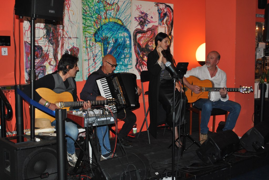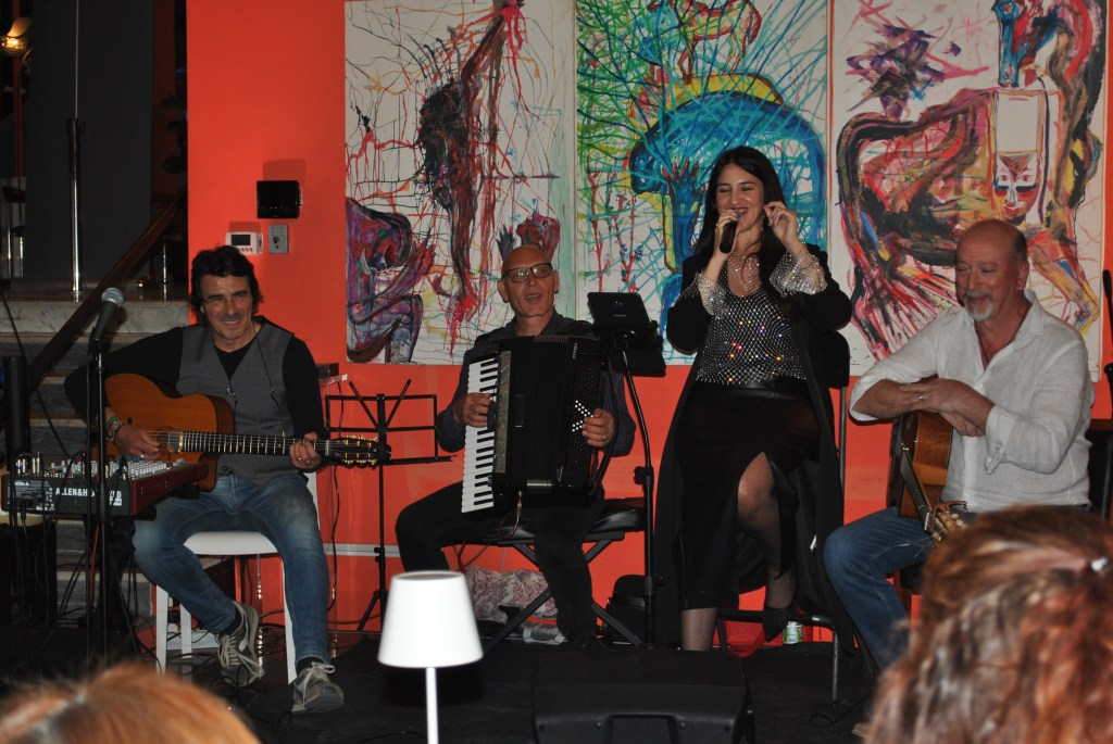 I musicisti presenti sul palco accompagnano la particolare ed intensa voce di Federica Cardone con grande sinergia e profondo interplay che testimonia come la musica rende tutto assolutamente e meravigliosamente possibile, le due chitarre del bravissimo Luciano Saiano e di Vincenzo De Falco accompagnate dalle sonorità della fisarmonica dello straordinario Alfredo Di Martino che personalmente ritengo uno dei fisarmonicisti più bravi del panorama musicale italiano e che ci ha deliziato con una magnifica interpretazione di uno dei più bei brani di Astor Piazzolla “Lbertango” che ha emozionato tutto il pubblico presente in sala.