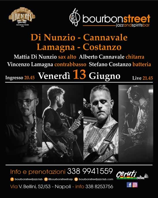 nello storico Bourbon Street Jazz Club Via Vincenzo Bellini 53 col presentare un gruppo straordinario dove nuove musicalità sposano la tradizione.