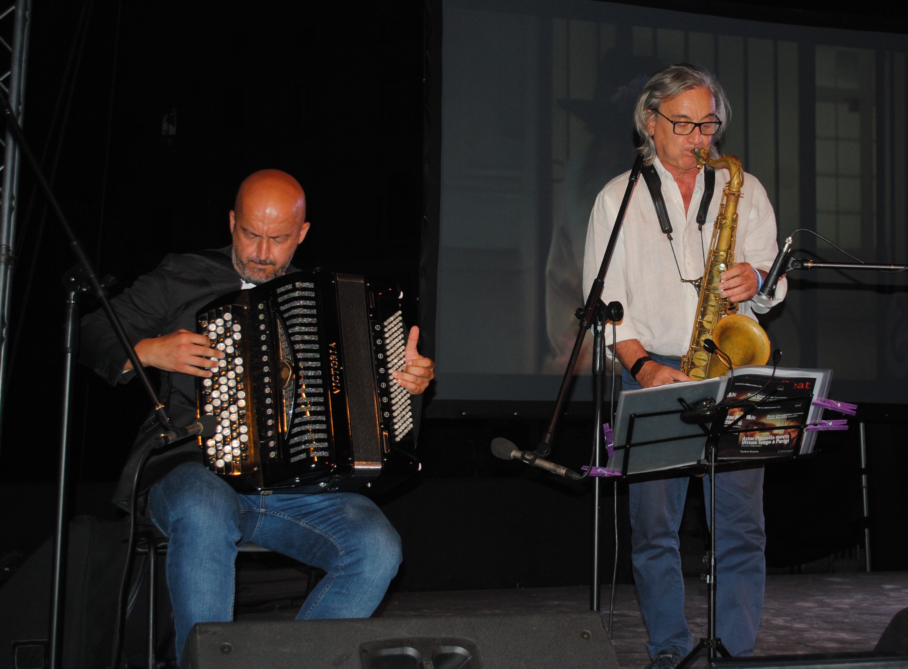 Pubblico che ha riconosciuto e apprezzato il talento dei due musicisti sul palco in due brani da brivido “Passione” e “Libertango” per poi accogliere con un grandissimo applauso la colonna sonora del film “Ultimo tango a Parigi” con la quale il duo ha salutato il pubblico che ha tributato loro un lunghissimo ed emozionato applauso.