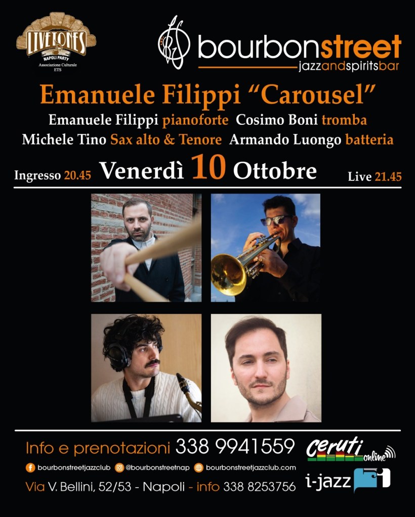 LIVE TONES NAPOLI ETS AL BOURBON STREET VENERDÌ 10 OTTOBRE : EMANUELE FILIPPI “CAROUSEL”