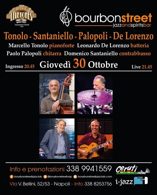 LIVE TONES NAPOLI ETS AL BOURBON STREET GIOVEDÌ 30 OTTOBRE : TONOLO-SANTANIELLO-PALOPOLI-DE LORENZO