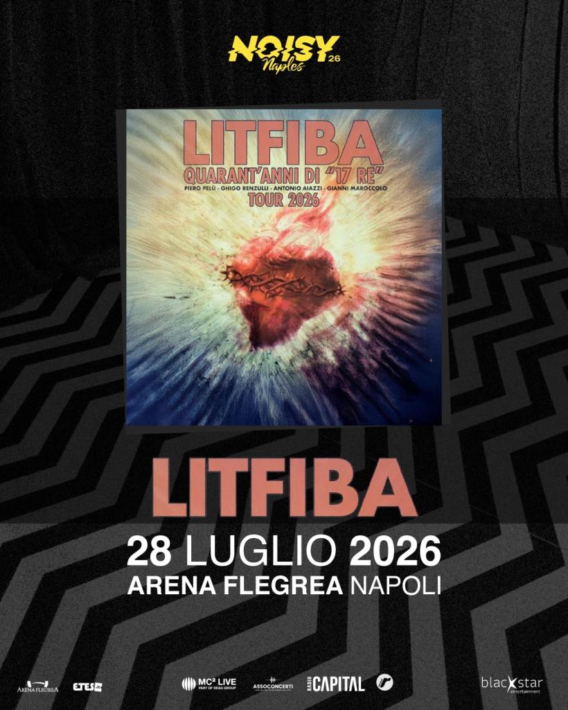 Il 2026 sarà l’anno del ritorno sul palco dei LITFIBA degli anni ’80 con la formazione originale, con un tour di 20 date in giro per l’Italia per celebrare i quarant’anni di “17 Re”, il disco che ha segnato una svolta epocale nel rock italiano e consacrato la band fiorentina a livello nazionale e europeo. Martedì 28 luglio 2026 i LITFIBA si esibiranno a Napoli, nell’unica tappa in Campania, all’Arena Flegrea per la nona edizione del Noisy Naples Fest.