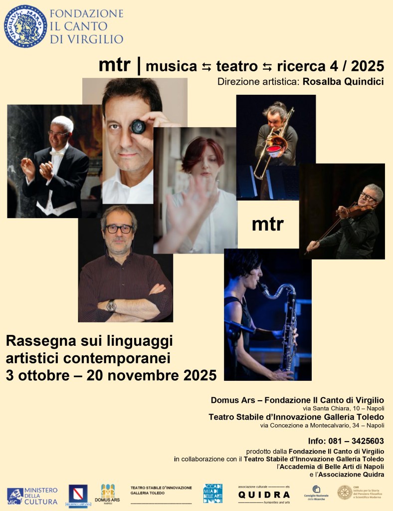 I prossimi due appuntamenti di MTR 2025 si svolgeranno presso il Teatro Galleria Toledo (Via Concezione a Montecalvario 34):