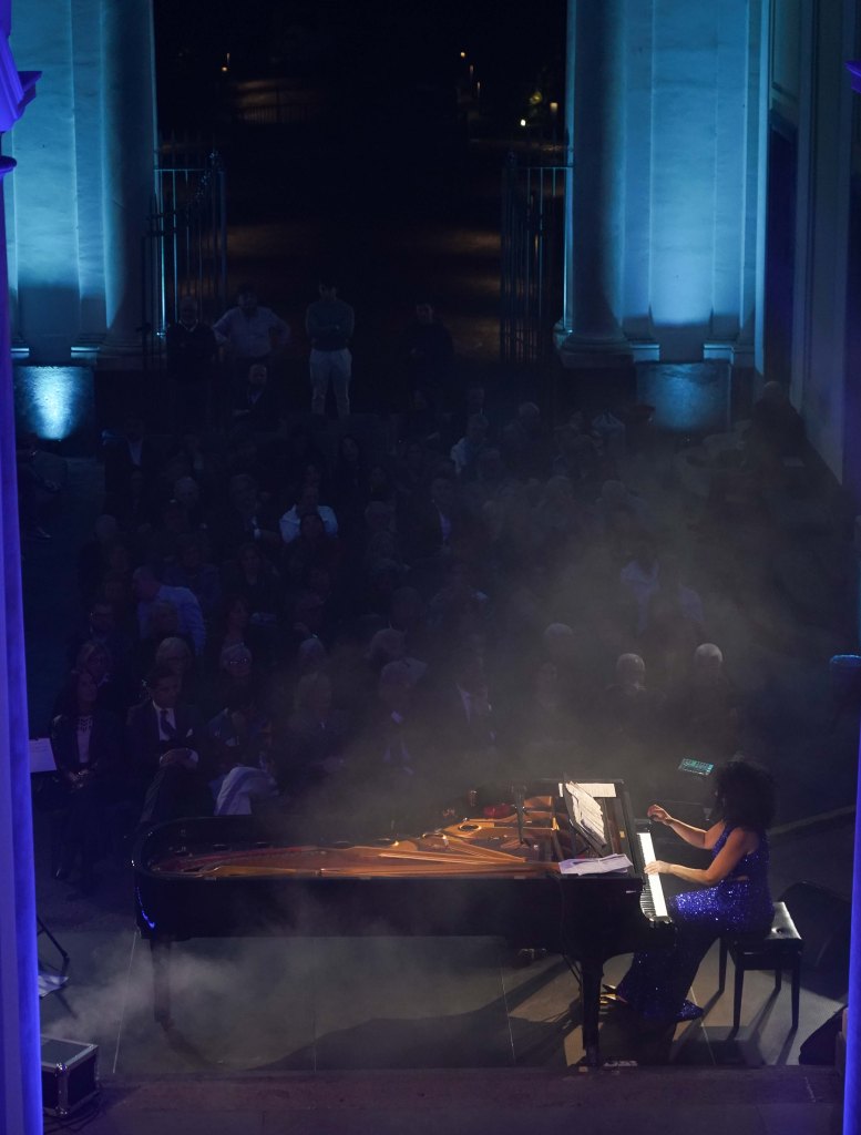 Nelle sale maestose della villa vesuviana, tra affreschi e colonne neoclassiche, si è respirata un’atmosfera sospesa: una platea gremita e silenziosa, rapita dall’“estasi” di suoni che la dea Ivana ha saputo evocare con la sua arte. Ogni vibrazione sembrava dialogare con le pareti stesse della dimora vanvitelliana, che ora custodiscono l’anima di un pubblico trasportato e commosso.