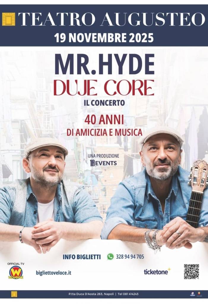 Mercoledì 19 novembre 2025 ore 21 teatro Augusteo MR. HYDE in “Duje Core”