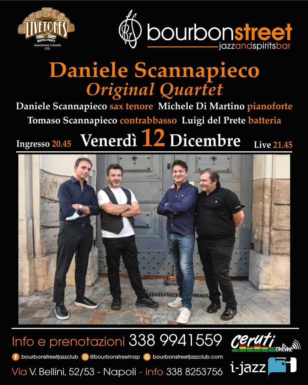 LIVE TONES NAPOLI ETS AL BOURBON STREET VENERDÌ 12 DICEMBRE : DANIELE SCANNAPIECO “ORIGINAL QUARTET”
