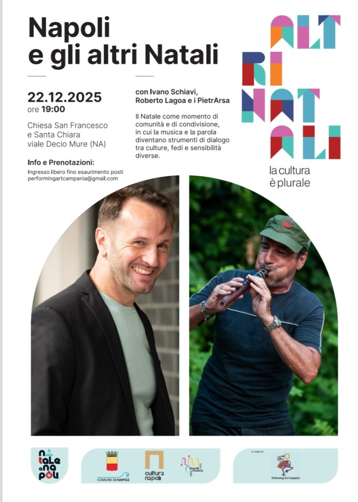 Lunedì 22 dicembre 2025,nella Chiesa di San Francesco e Santa Chiara aPonticelli (NA), in Viale Decio Mure, alle ore 19,00, arriva il Concerto di Natale della World Music Pietrarsa con Roberto Lagoa e Ivano Schiavi un’iniziativa promossa e finanziata dal Comune di Napoli, nell’ambito della rassegna “Napoli e altri Natali”,