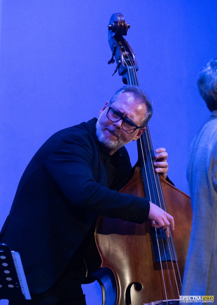 ll contrabbasso di Giuseppe Venezia si muove al centro del suono dell’ensemble con discrezione e sicurezza, sostenendo l’andamento dei brani e guidando lo sviluppo musicale con un senso naturale dell’equilibrio. Attorno a questa base solida prende forma il dialogo tra gli altri strumenti, in un gioco di ascolto reciproco e di continua interazione.